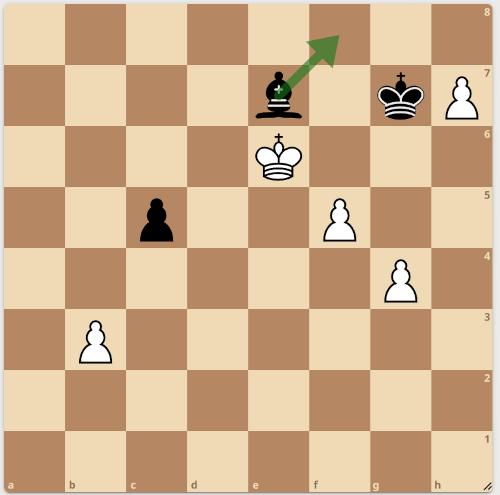 Überraschend einen Punkt bei Hitdorf geholt! Hitdorf ging mit ihren ersten 8 Brettern an den Start, was die Ausgangslage für uns nicht einfacher machte. Georg bekam eine vorbereitete Variante aufs Brett und kam so sehr gut aus der Eröffnung. Ein voller Punkt für uns. Rickys Stellung sah etwas löchrig aus, er konnte aber die gegnerische Dame mit ständigen Angriffen sehr nerven, so dass sein Gegner dem Remis zustimmte. Apropos Dame, die konnte Christof fangen, was uns den nächsten Punkt einbrachte. Rainers Partie sah sehr lange ausgeglichen aus, was dann auch folgerichtig in einem Remis endete. Genau so sah es bei Samuel aus, leider wickelte er in ein schlechtes Endspiel ab.Helge sah auch lange Zeit hoffnungsvoll aus, aber auch da kippte das Endspiel gegen ihn. Sehr stark spielte Hubertus und sah lange wie der sichere Sieger aus. Dann zauberte sein Gegner eine Kombination aus dem Hut, in dem er für einen Mattangriff seine Dame opferte, schade. So stand es 4:3 für Hitdorf, während Ralf die letzte Partie des Tages spielte. Mit Weiß konnte Ralf früh im Spiel 2 Bauern gewinnen und sah lange nach dem sicheren Sieger aus. Aber Udo Bayer wehrte sich mit Zähnen und Klauen und gewann einen Läufer. So kamen die beiden in eine Stellung, wo nicht mehr klar war, ob Ralf den nötigen Sieg für uns holen konnte (siehe Diagramm).